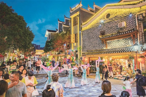 图① 8月5日晚,吉首市乾州古城夜色绚丽,游客如云。