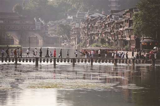 图② 8月5日,众多游客来到凤凰古城参观游览,乐享假期。 彭彪 摄