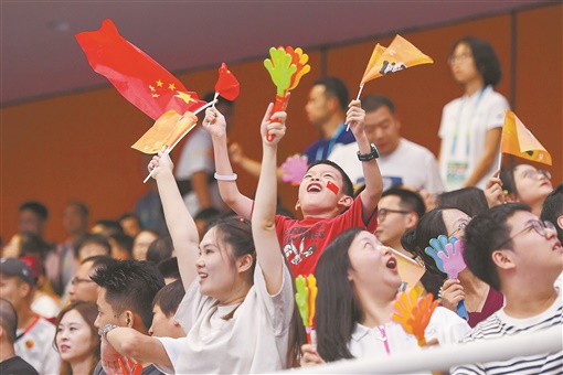 7月29日,在男子篮球比赛中,观众为中国队加油。 |