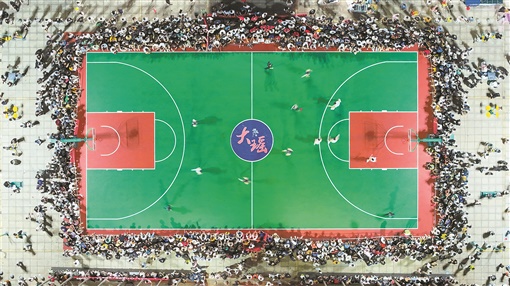 观众拿着大喇叭,为进球欢呼雀跃;浏阳黑山羊、“加特林”烟花、藏香猪、大白鹅作为比赛奖品;大人小孩为了赢得大西瓜和饮料也忍不住起跳、投篮。一个篮球牵动着在场千百人的情绪,每一次进球都会激起观众的欢呼声。“全BA”就像一颗“礼花”点缀美丽乡村,点亮美好生活。