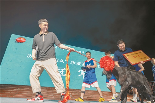 7月20日,浏阳“全BA”永安赛区总决赛,永安村代表队以62:47击败丰裕村代表队,赢得冠军,奖品是一头浏阳特色黑山羊。 |