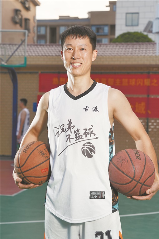 吴海波,42岁,农民 “2003年,我在广州打工时开始喜欢篮球。2010年,看到家乡发展越来越好,我回浏阳务农,现在种了2亩水稻、1亩秋葵,还有好多蔬菜。篮球我们虽然打得不专业,纯属业余爱好,但是真喜欢打球,每天都要打一场球过过瘾。” |