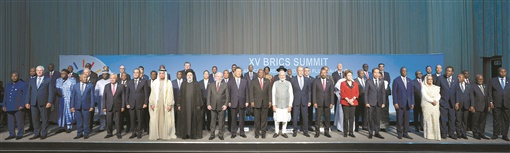 会议由南非总统拉马福萨主持,巴西总统卢拉、印度总理莫迪、俄罗斯总统普京(线上)和60多位非洲国家及其他新兴市场和发展中国家领导人或代表,以及联合国秘书长古特雷斯、新开发银行行长罗塞夫等国际和地区组织负责人出席。