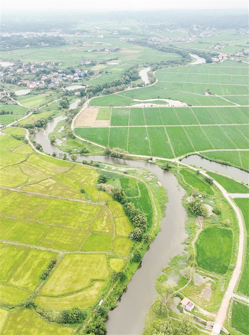 8月28日,长沙县麻林河洪河段,建设完工后的河道同周边屋舍、村道、稻田相织相融。为维持河道岸坡稳定,保障粮食生产灌溉需求,改善河道景观,长沙县水利局对该河段进行了生态治理,麻林河洪河段沿河景观焕然一新。 湖南日报全媒体记者 傅聪 摄