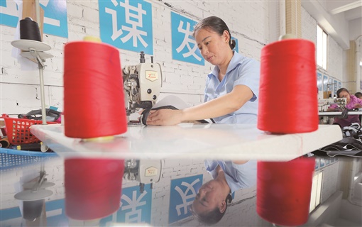 8月31日,祁东县灵官镇易地搬迁集中安置点,村民在乡村车间工作。近年来,该镇通过平台化运营、市场化招商和精细化服务等措施,在易地搬迁集中安置点建设了多个乡村车间和特色中药材种植基地,促进劳动力就近就地就业。