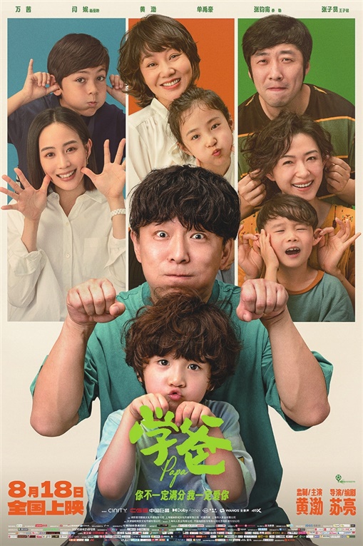 如果说家庭伦理电影的主阵地围绕家居空间展开,那么青春校园电影则聚焦校园,书写少年。动画电影《茶啊二中》立足于现实校园生活,以魔幻现实主义的身份互换设计,将调皮学生与严厉老师的角色调转,反差且诙谐的课堂上笑料百出,而师生和解的公开课令人“笑中带泪”。同样是魔幻现实主义的喜剧作品《超能一家人》是“开心麻花”的曲折之作,以“超能力”智斗女强人的喜剧外壳,包裹了家庭伦理叙事的亲情元素。申奥导演的《学爸》以颇具现实基础的艺术再创作,把“鸡娃现象”与“升学压力”摆在家长一地鸡毛的生活面前,以三组不同家庭的亲子成长反思教育。