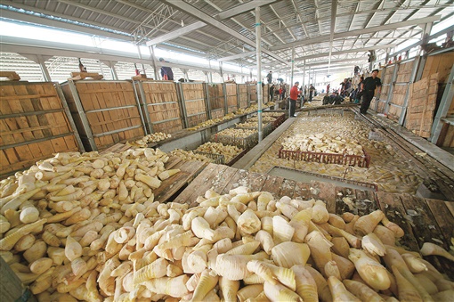 “这段时间又生产又发货,忙不赢。今年以来已卖了200多万公斤复水笋、即食笋,产值达1000多万元,产品远销北京、江西、浙江、四川等地。”公司老板胡永红介绍,去年天气干旱造成今年竹笋减产,但笋农减产不减收。去年公司收笋每公斤1.6元,今年普遍提高到3元,最高达到3.4元。