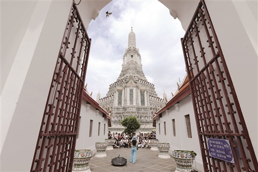 泰国总理赛塔·他威信9月13日宣布,自9月25日起泰国对中国游客实行免签制度,为期约5个月。图为游客在泰国曼谷郑王庙景区拍照。(资料图片)新华社 发
