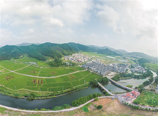 9月25日,桂阳县正和镇和谐村,稻田中“庆丰收 促和美”字样尤为醒目,与村庄、田野、河流、青山相映成趣。近年来,该村以“和”为主题,将乡村变成了景区,吸引众多游客前来打卡体验。