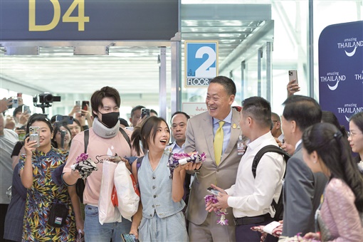 据新华社曼谷9月25日电 自25日起,泰国对中国游客实施为期约5个月的免签政策。当天上午,泰国总理赛塔·他威信与多名政府高官前往首都曼谷的素万那普国际机场迎接中国游客。当天,泰国国家旅游局还在曼谷廊曼机场、清迈机场和普吉机场举办仪式欢迎中国游客。