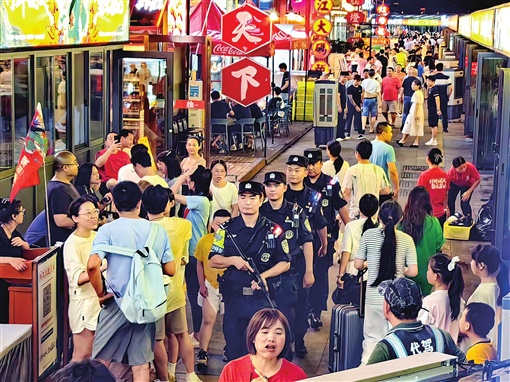 在刚过去不久的暑期,长沙成为全国暑期游十大热门目的地之一。各大景点、商圈热闹非凡。如何让游客的安心游玩,让网红之城更具平安底色?长沙公安出台五一商圈治安防控方案,延长五一商圈、中心广场等人员密集区域的执勤时间,在5大重点夜市前各设置1个快警平台开展值守,确保社会治安大局持续稳定。