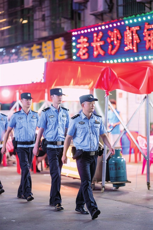 在每晚人流量约5万人次、节假日能达到10万人次的长沙四方坪夜市里,他们共同携手书写“平安秘籍”。