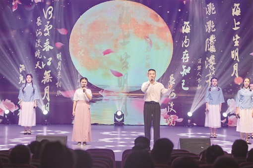 9月28日晚,吉首市举办“我们的节日·中秋·月是故乡明”职工经典诵读活动,通过对祖国、家乡和美好生活的礼赞,让全市职工在诗词歌赋里感受传统文化魅力,激发家国情怀,图为诵读现场。 彭璟 摄