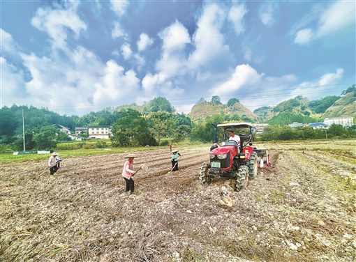 10月3日,通道侗族自治县万佛山镇坪地村,村民在整地准备种“大头菜”。连日来,当地村民抢抓农时,田间地头一派农忙景象。陈俊宇 摄