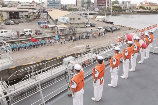 搭载300余名海军院校学员的中国人民解放军海军戚继光舰10月8日结束对斐济友好访问,离开斐济首都苏瓦,继续开展远海实习。图为当日,人们在斐济苏瓦港国王码头为戚继光舰官兵送行。新华社 发
