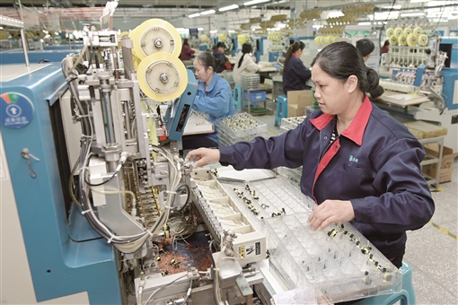 10月9日,洞口经开区慧创电子有限公司,员工在生产出口订单产品。今年,该经开区积极引导当地外贸企业加快技术创新和产品转型升级,拓宽产品销售渠道,促进外贸经济稳步发展。 滕治中 尹邦勇 摄影报道