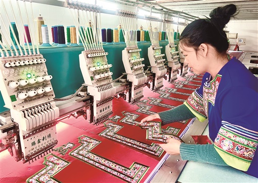 10月10日,通道侗族自治县城东东华门小区侗锦加工车间,工人在检验侗锦质量。近年来,该县全力推进侗锦产品开发,让侗族织女凭借手艺在家门口织出“锦绣”生活。
