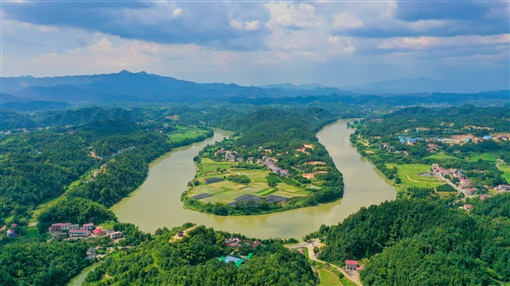 沿着浏阳河一路蜿蜒前行,很快就来到了素有“曲尺潆洄,梦绕之境”美称的浏阳河最美河湾——曲尺湾。登上岸边的小山头,只见近处山影重重映水中,远处千重稻浪随风起,交映出一幅绝佳的自然山水国画。
