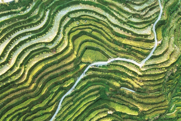 ▲10月14日,新化县水车镇紫鹊界梯田一片金黄,农民趁晴好天气抢收稻谷。