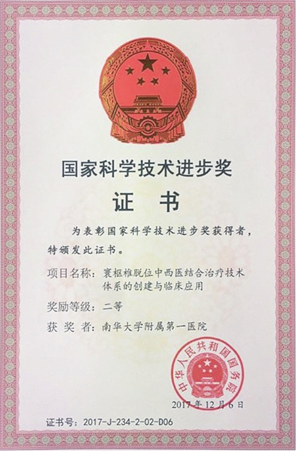 2015年,南华附一骨科被评为湖南省第一批“湖南省临床重点专科”,成为“湖南省脊柱微创临床医疗技术示范基地”和“湖南省脊柱微创临床医学研究中心”;2018年获批国家卫健委加速康复外科骨科试点医院;2020年获批“中华护理学会京外骨科专科护士临床教学建设基地”;2021年获批“国家卫健委骨科软组织管理及缝合规范化培训基地”。2022年获批国家临床重点专科培育项目学科,专科连续三年入围全国骨科专科科技影响力百强,跻身全省前三位。