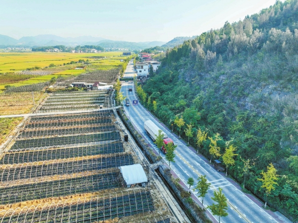 10月17日,道县梅花镇棠下村,国道207线沿线产业基地生机盎然。近年,该县完善城乡路网建设,带动农产品外销、特色种养业和乡村旅游发展。蒋克青 李昊璋 摄影报道