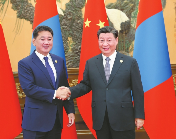 习近平指出,蒙古国是共建“一带一路”的天然伙伴,也是最早支持“一带一路”倡议的国家之一。10年来,双方深入对接发展战略,在贸易投资、互联互通、民生工程等方面合作取得可喜成果。共建“一带一路”倡议同蒙古国“草原之路”发展战略有着广阔合作空间。希望蒙方依托自身联通欧亚的地理条件,为高质量共建“一带一路”发挥更大作用。