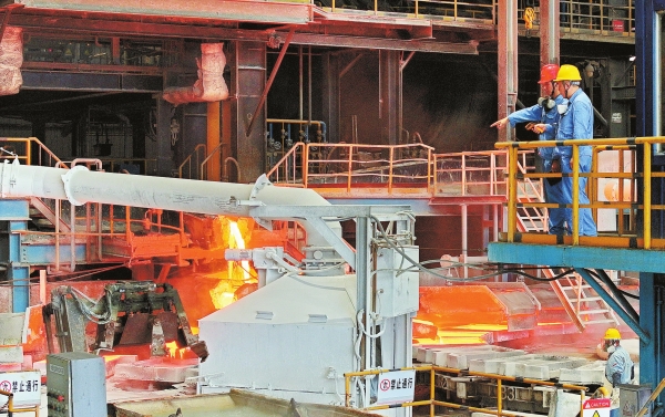 10月19日,常宁市水口山镇,五矿铜业(湖南)有限公司生产车间一派繁忙景象。作为中国五矿重组湖南有色后在湖南的第一个重大投资项目,今年该公司呈现产销两旺的良好发展势头,将努力实现全年产值突破100亿元、利润超2亿元的目标。
