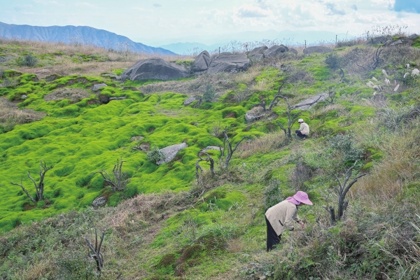10月25日,蓝山县云冰山景区,工作人员在清理高山苔藓间的杂草。目前,云冰山共有两处面积400多亩的连片高山苔藓群落。近年来,该县多措并举提高生物多样性保护成效。
