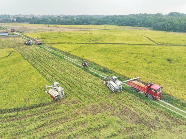 10月26日,道县寿雁镇十里桥二村,农机手驾驶农机在抢收晚稻。当前,晚稻进入抢收关键期,该县积极引导农机专业合作社、农机大户开展农机抢收作业,提高收割效率。蒋克青 摄