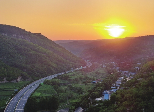驱车在高速公路上,满目是绵延不绝的青黄驳杂的山塬山峁山梁。那模样,既粗砺又柔和,既严峻又温厚。一个个大多由新式窑洞聚合在一起的村落,安静地“趴”在山脚、山窝。