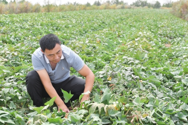 他领着我们,看他从山东引种的村集体的600亩红薯——昼夜温差大的气候,软糯香甜的品质,使肥厚的绿色藤蔓下结着高价的“金果”;看村集体的100亩樱桃园——一大片随风摇曳的樱桃树,即将在明后年挂果,让人对未来的收成生出无限美好的遐想。