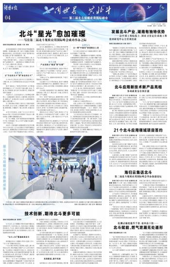 从空间段、地面段到用户段,湖南形成了覆盖星载设备、天线、芯片、算法、板卡、终端、应用的完整北斗产业链条。