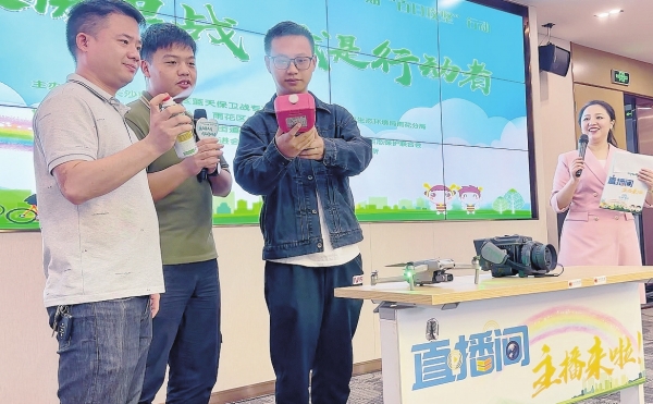 直10月27日,长沙市雨花区蓝天办工作人员在直播间展示便携式大气污染检测设备。当天,该区创新推出“蓝天保卫战”共享直播间,开展环保科普宣传,倡导低碳生活。