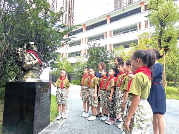 深秋时节,走进长沙市雨花区育新第二小学国防主题文化园,伴随着琅琅读书声,映入眼帘的是张思德、董存瑞、黄继光、邱少云、雷锋、苏宁、李向群、杨业功、林俊德、张超等全军十大英模雕像,坚毅的神情、英勇的姿态,昭示英模崇高的理想信念和人生追求。长沙率先全省让英模雕像走进校园,既是对英模精神的传承与发扬,更是引导师生进一步赓续红色血脉,增强心系国防的责任感、使命感,让家国情怀在校园深处扎根发芽。