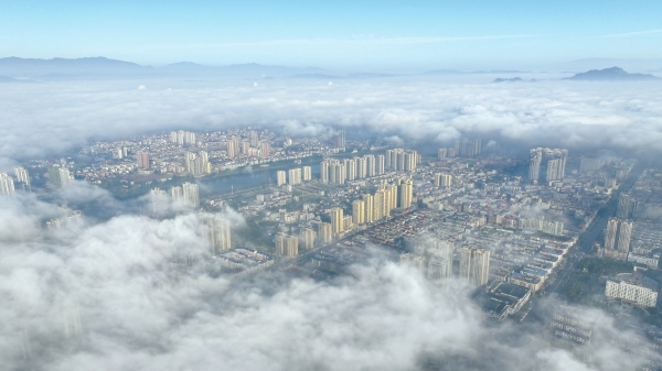 11月17日,新化县出现平流雾景观,县城在云雾中若隐若现,胜似仙境。曾文贵 摄