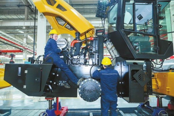 12月11日,涟源高新区湖南三一华源机械有限公司,工人在赶制平地机海外订单产品。吴永华 摄