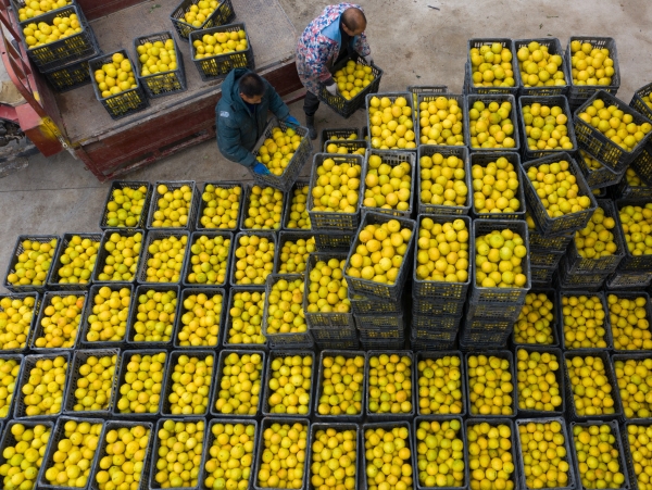 12月13日,中方县泸阳镇下坪村黄金贡柚基地,村民在采收黄金贡柚。近年来,该县将黄金贡柚作为“一村一品”培育项目,黄金贡柚已成为当地乡村振兴、村民致富的“黄金果”,产品还远销俄罗斯、乌兹别克斯坦等国家。