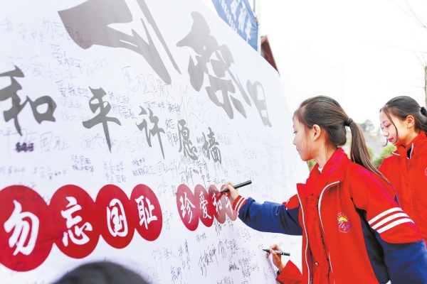 12月13日,学生在“和平许愿墙”写下和平心声。当天是第十个南京大屠杀死难者国家公祭日,通道侗族自治县礼雅小学开展“国家公祭日,圆梦中华”系列爱国主义教育,引导学生铭记历史,珍爱和平。