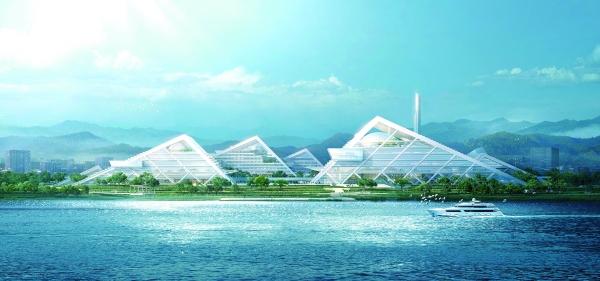 铺展其核心展示区的规划设计蓝图,标志性建筑群层峦叠嶂、错落有致,开合有序、虚实相生,如山枕水、连洲为城。