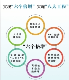 《实施意见》明确,要以“八大工程”促“六个倍增”,通过5年时间努力,基本完成国家重大科技基础设施、国家实验室、国家创新中心等战略科技力量科学布局,新引育全球研发中心、外资研发中心等高水平创新平台80家以上,新增省级以上创新平台500家以上,把科技创新的“关键变量”转化为高质量发展的“最大增量”。