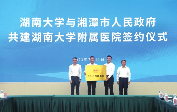 7月11日,湖南大学与湘潭市政府签约,启动“湖南大学附属医院”建设,湘潭市中心医院是其直属附属医院。湖南大学将湘潭市中心医院建设高质量发展的区域医疗中心,纳入学校中长期发展规划,统筹谋划湖南大学医学院和湘潭市中心医院高水平人才队伍建设、学科建设和人才培养等工作。