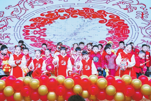 12月29日,孩子们在表演文艺节目。当天,长沙师范学院附属第一幼儿园举行“与龙相遇 喜迎新年”庆元旦活动。孩子们一起参与新年音乐会、体验传统民俗游园会等活动,在欢乐、轻松的氛围中迎接崭新的2024年。