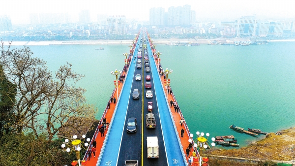 2023年,沅陵县启动4条乡镇通三级公路项目,总里程100余公里。这4条覆盖8个乡镇的三级公路,惠及10余万人。沅水江面,沅水一桥崭新的机动车道、蓝色的非机动车道,与漂亮的路灯、护栏、人行道相得益彰。维修改造提质后的一桥融入了现代化的城市建设,为“两水三镇”城市格局添彩。