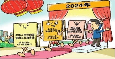 伴随着新年的钟声,一批重要新规自元旦起施行。以法治之力保障推动爱国主义教育开展,未成年人网络保护综合立法助力青少年健康成长,药品经营使用监管新规守护你我生命健康……全新的2024年,迎来法治新气象。