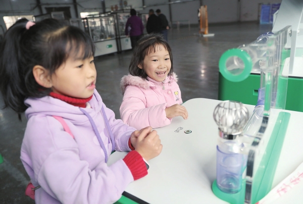 1月1日,小朋友在道县流动科技馆操作“听话的小球”。元旦假期,许多家长带着小孩走进道县流动科技馆,感受科技魅力,丰富假期生活。何红福 摄