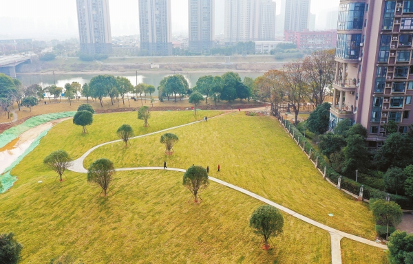 1月4日,长沙市开福区双湾国际小区东侧,市民在新开放的“口袋公园”里散步。该公园面积约16亩,原为附近居民违规开垦的菜地。近日,开福区秀峰街道以“走找想促”活动为契机,组织相关部门开展联合整治行动,将菜地复绿改造成居民家门口的“口袋公园”。