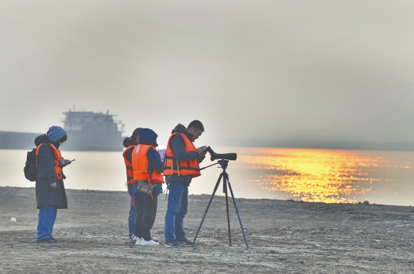 1月8日,2023—2024年湖南省越冬水鸟第二次同步监测启动。这对进一步掌握全省越冬水鸟数量和分布现状、栖息地状况和威胁因素等具有重要意义,为全省越冬水鸟的保护提供重要数据支撑。图为东洞庭湖国家级自然保护区管理局工作人员在开展水鸟监测。