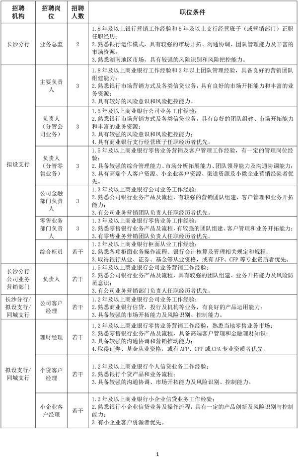 现因业务发展需要,面向社会诚聘银行、证券、信托、投行等各方面金融英才。我们将为每位加盟的员工构建良好的职业生涯发展规划,提供业内具有竞争力的薪酬福利待遇,热忱欢迎有识之士和专业英才加入,共同开创独具特色的浙商银行长沙分行发展之路,成就自我职业梦想。