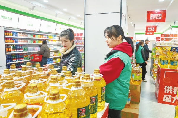 发挥供销社的传统优势,春节前省供销集团在全省开出100家供销优供平价超市,以县城为中心、乡镇为重点、村为基础,背靠全省供销系统强大的货源与物流优势,将优质的商品以更实惠的价格销到乡镇,激活农村消费。