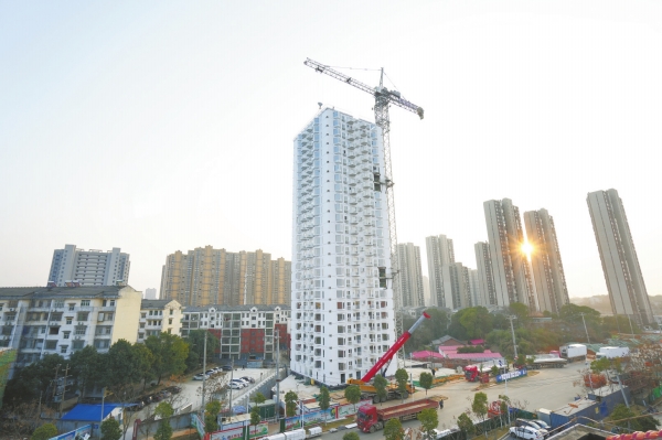 湖南日报1月11日讯(全媒体记者 周磊 通讯员 彭柳)今天,由远大可建科技有限公司承建的全球首座高层活楼高级住宅在湘阴落成。该住宅楼共有26层,建设时间仅用5天,可容纳200户居民入住。